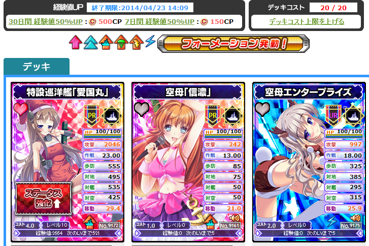 愛国丸を資源回収しつつ育成開始。 4コストでも6F発動はありがたい。